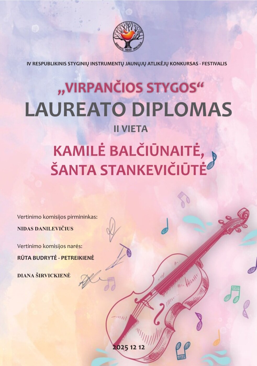 Gruodžio 12 d. Širvintų meno mokykloje vyko nuotolinis IV respublikinis styginių instrumentų jaunųjų atlikėjų konkursas „Virpančios stygos“. Dalyvavo mūsų mokyklos kanklių klasės atstovės: