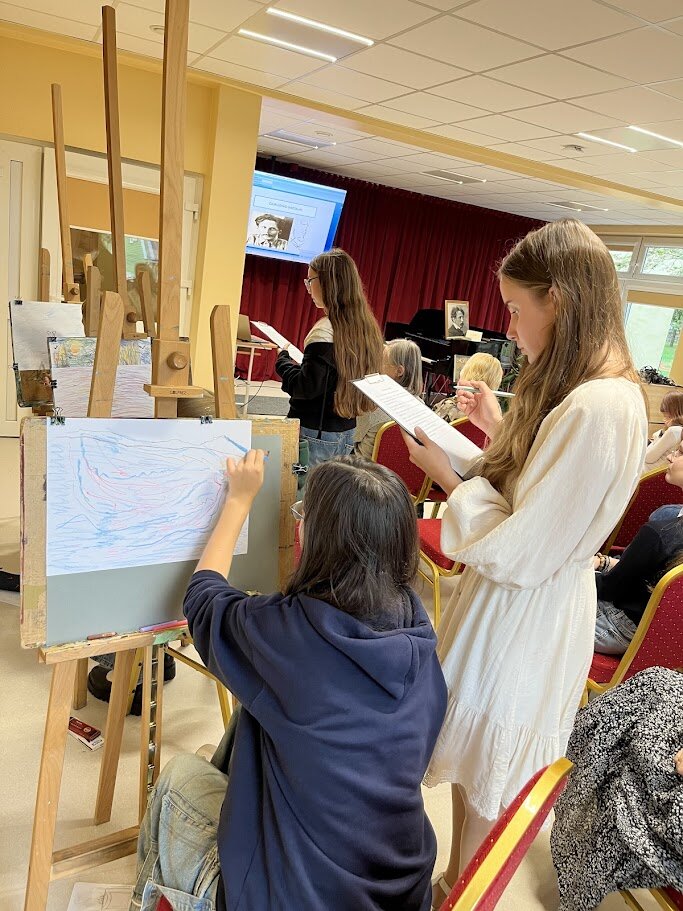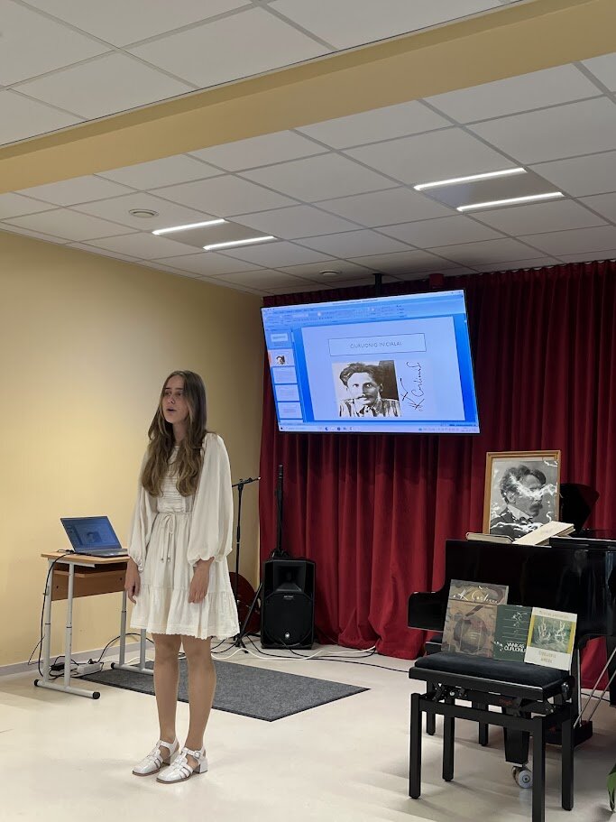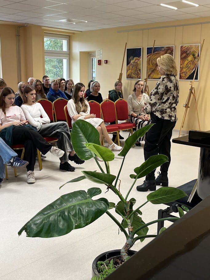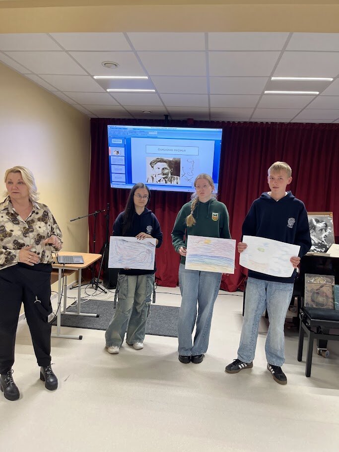 Rugsėjo 22 d. mūsų mokykloje vyko ypatinga atvira pamoka, skirta iškilaus Lietuvos menininko Mikalojaus Konstantino Čiurlionio 150-osioms gimimo metinėms pažymėti. Tai buvo puiki proga ne tik pagerbti šį talentingą kūrėją, bet ir geriau susipažinti su jo įvairiapuse kūryba. Pamokos metu žiūrėjome ištraukas iš dokumentinio filmo „Orkestro piknikas Čiurlioniui“, kuris leido pažvelgti į menininko gyvenimą bei kūrybinį palikimą kitu kampu – per šiuolaikinio meno ir muzikos prizmę. Aptarėme Čiurlionio tapybos ir muzikos sąsajas, kalbėjomės apie jo darbų simboliką, spalvų reikšmes ir emocinį poveikį. Mokiniai piešė paveikslus pagal jo muziką – bandė spalvomis išreikšti garsus, nuotaikas ir vaizdinius. Tai buvo labai įdomi ir kūrybiška užduotis, padėjusi geriau suprasti, kaip glaudžiai gali būti susiję skirtingi meno žanrai. Už šią pamoką dėkojame choro mokytojai metodininkei D. Nickuvienei, solfedžio vyr. mokytojai Z. Petravičienei, dailės mokytojui V. Traneliui.