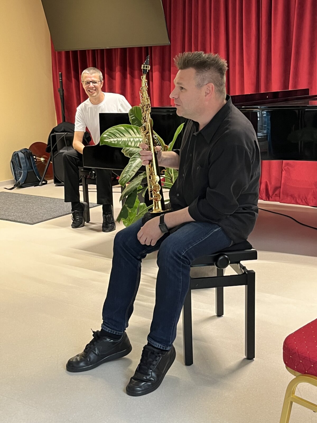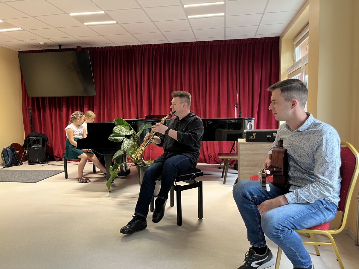 Prienų meno mokykloje vyko meistriškumo pamoka apie džiazo muziką ir improvizaciją. Projektą Jazzo karavanas organizavo Lietuvos džiazo federacija. Janas Maksimovičius - džiazo saksofonininkas, kompozitorius, pedagogas ir Dmitrijus Golovanovas - džiazo muzikantas (klavišininkas) ir pedagogas nuoširdžiai ir išradingai bendravo su mokyklos mokiniais ir mokytojais. Mokiniai kartu su profesionalais improvizavo, grojo, klausėsi ir dalijosi savo patirtimis. Ši meistriškumo pamoka ne tik praturtino mokinių muzikinį akiratį, bet ir įkvėpė kūrybiškumui, drąsai improvizuoti bei pažinti džiazą iš arčiau. Dėkojame atlikėjams už neįkainojamą patirtį!
